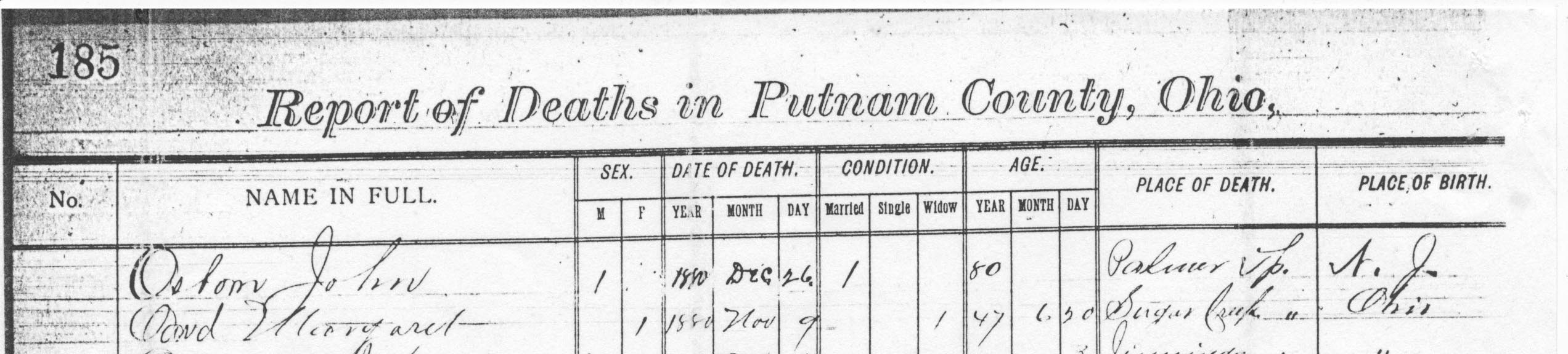 Putnam Co., OH Probate Death Records, Vol. 2, page 185
