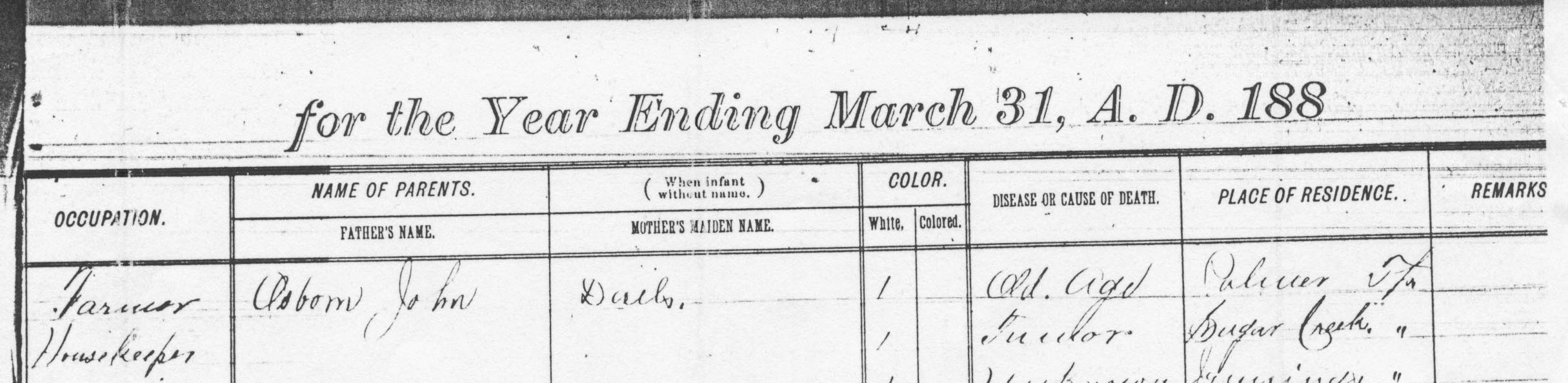 occup: farmer; father: Osborn, John; mother's maiden name: Dail<?>;